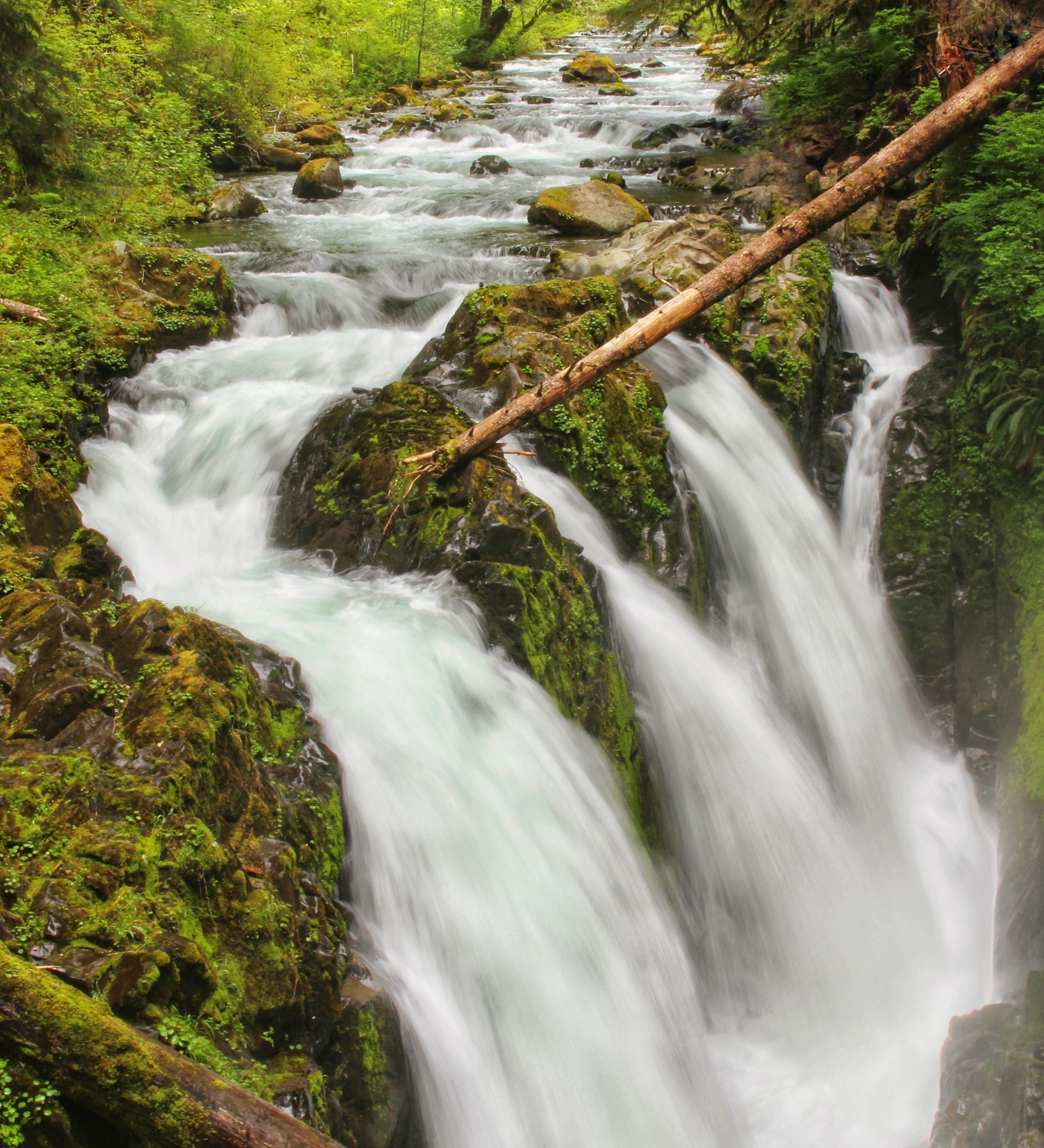 Day 2 actually began in the early afternoon, since we need to take care of our own business in the morning. We drove 1 hour to Sol Duc Valley for experiencing the primeval forests and waterfall. We picked Sol Duc Fall Trail and Salmon Cascades as stop points. Sol Duc Fall Trail was not initially on my to-do list since online pictures didn’t seem to be attractive. But the reality is sometimes opposite with what you expected. We were totally shocked about what was showing to us. The river plunges over Sol Duc Fall called Sol Duc River, which is one of the five rivers flow across Olympic Peninsula. The water begins from melting glaciers of Olympic mountains and flow through temperate rain forest, and then into the western Pacific Ocean. The other four rivers are Quinanalt, Queets, Hoh, and Bogachiel.