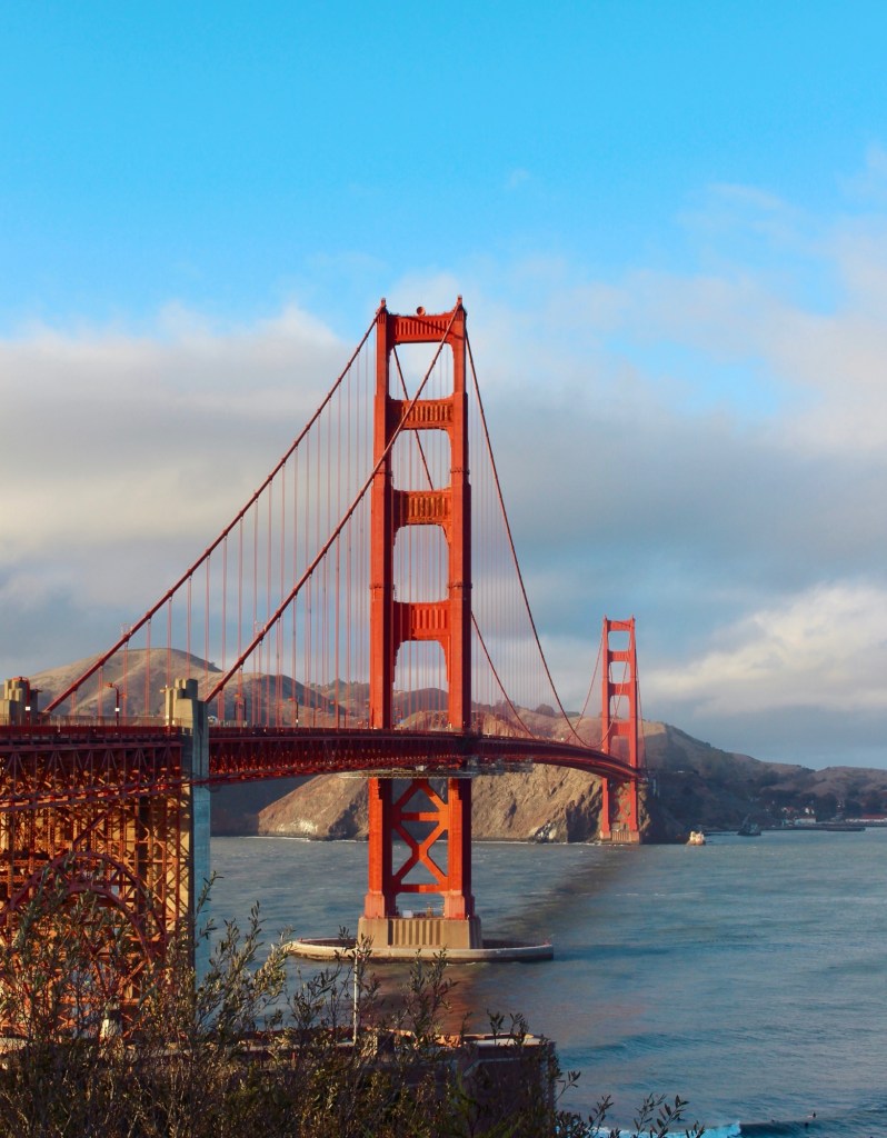 第一天,我们参观了Golden Gate Bridge。我们是临近落日的时候才抵达,夕阳洒在红色桥身上,让大桥看上去更加鲜艳夺目。金门大桥的桥面上有人行道,可以步行感受大桥的雄伟。不过,桥上的风特别大,感觉随时都会被吹得站不稳。在桥上或岸边的视野极为开阔,还能远远地眺望到位于海中的恶魔岛监狱。我们2017年也曾造访过金门大桥,当时的景象与如今相比并无太大变化,只是桥身似乎正在进行维护。