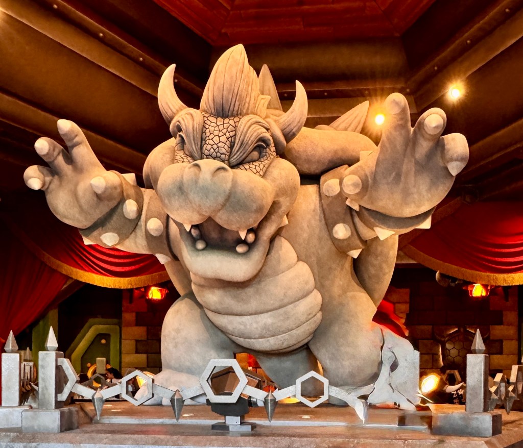 这个环球影城虽然和奥兰多的区别还是蛮大的,但是也很值得一来,尤其是Super Nintendo World!我和老公平时就特别喜欢玩马里奥游戏,家里还有不少马里奥玩偶,这次能身临其境地进入马里奥的世界,非常推荐!我们一进园区就被色彩鲜艳的布置吸引,蘑菇王国、金币方块、管道、甚至城堡,每一个细节都非常逼真。我们还买了互动手表,和园区里的游戏互动,每攒满三个钥匙后可以进入城堡挑战Bowser。