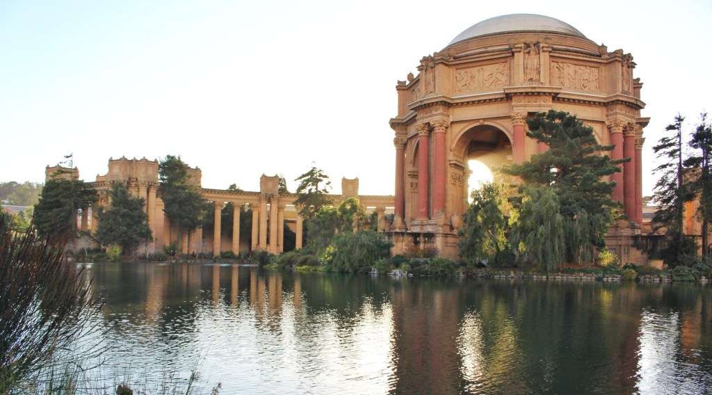 接着,我们前往了Palace of Fine Arts,一大建筑地标。起初为国际博览会而建,用于展览艺术品和雕塑。里面的建筑灵感主要来源于古罗马和希腊建筑,尤其是圆顶和罗马柱的设计。虽然博览会结束后很多展馆被拆除,但这座宫殿因其优美的设计被保留下来。同时也是市民和游客喜爱的散步和拍照地标。我们绕湖走了一圈,发现很多市民来这散步,附近居民区的房屋已经开始装饰圣诞灯饰,增添了一丝温馨感。晚餐时间,我们去了唐人街。街区里布满中式风格的牌坊、灯笼和各种餐馆和商铺。我们随意选了一家中式餐馆,意外地品尝到了特别惊艳的孜然牛肉。