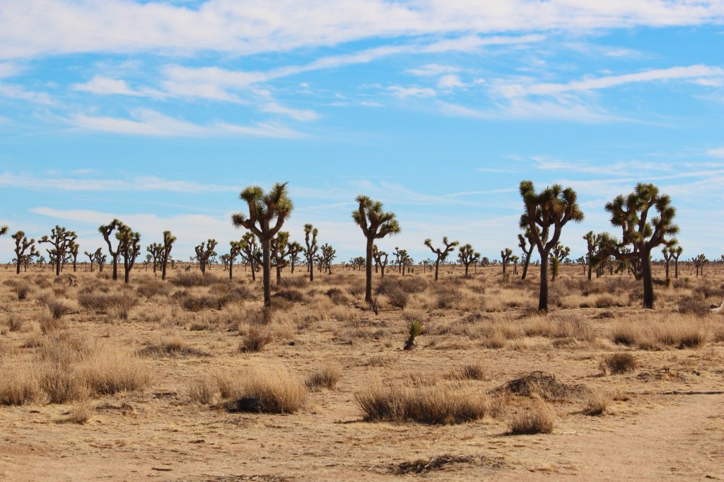 Joshua Tree National Park由两大沙漠组成:北部的Mojave和南部的Colorado。我们下一站的拉斯维加斯就需要开车往东北穿过Majove沙漠。Mojave沙漠的气候最适合约书亚树生长,所以约书亚并不一定只能在国家公园里才能看到,我们在去拉斯维加斯的路上也看到了许多。