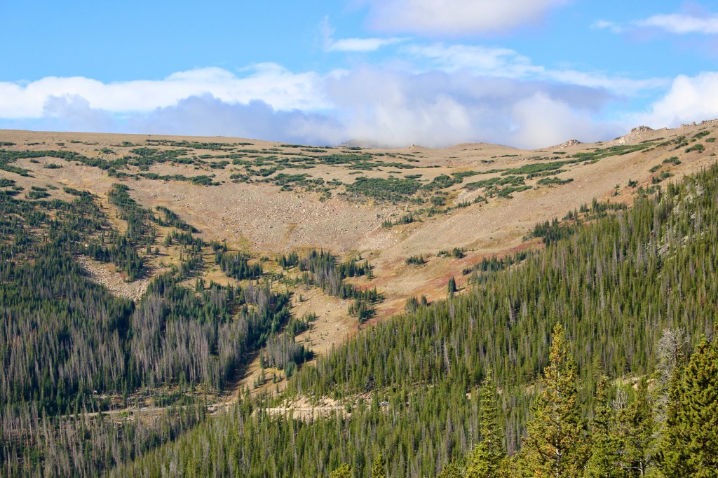 Traveling west helps avoid crowds by making it easier to wake up early. Today we took a full-day scenic drive along Trail Ridge Road from Beaver Meadows to Grand Lake, stopping wherever looked interesting.