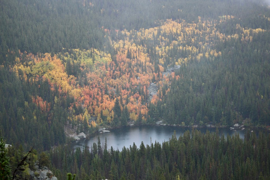 We finished the drive at Grand Lake, a quiet little town on the western edge of RMNP. We walked a segment of the Continental Divide Trail along Shadow Mountain Lake, surrounded by golden aspens glowing across the water.